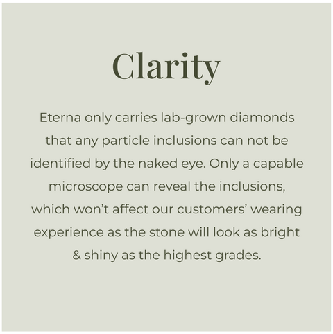 Looking for your next ethical diamond? Eterna lab-grown diamonds are created in a controlled environment, eliminating the environmental impact that comes with mining traditional diamonds. Our diamonds are also conflict-free, ensuring that human rights are protected. At Eterna, we stay true to our morals while providing affordable, high quality diamonds.
